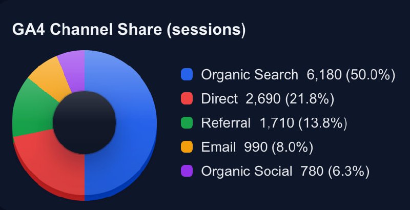 Track organic, direct, referral, and other channels in a simple executive view.