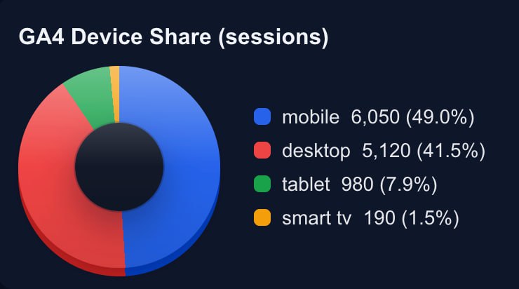 Know exactly how session mix shifts across mobile, desktop, and tablet.